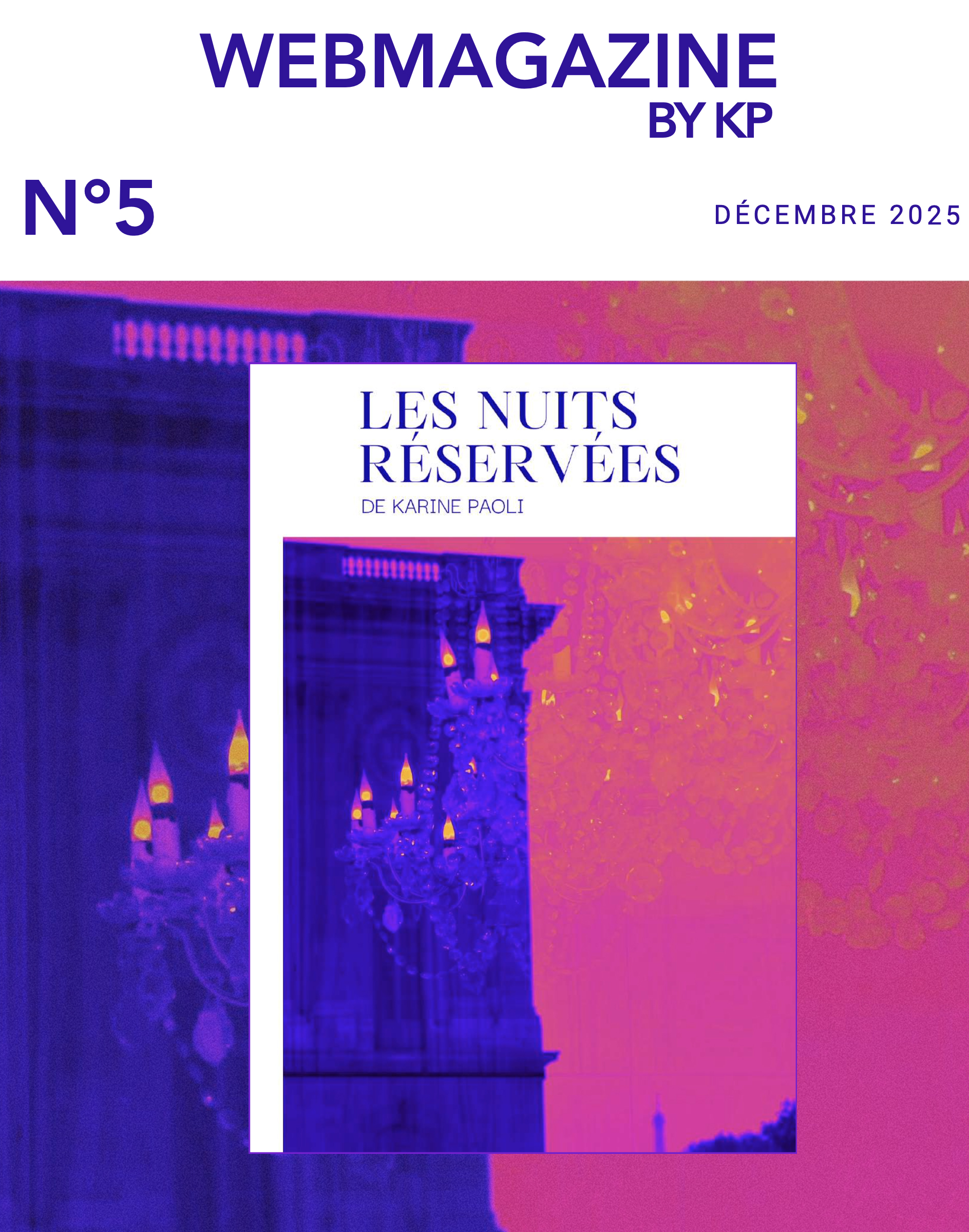 Bonjour, J’espère que vous allez bien.Le WEBMAGAZINE BY KP de décembre vient de paraître et vous le trouverez en pj, porté par l’envie de partager un peu de douceur et de beauté en cette fin d’année. Dans ce numéro, vous trouverez un focus sur mon roman « Les nuits réservées » (numéroté sur 100 exemplaires), des instants […]