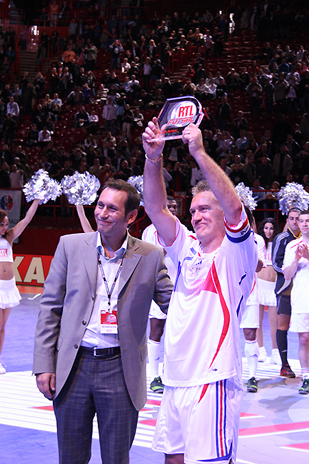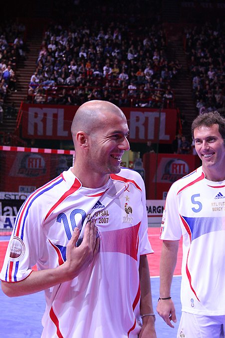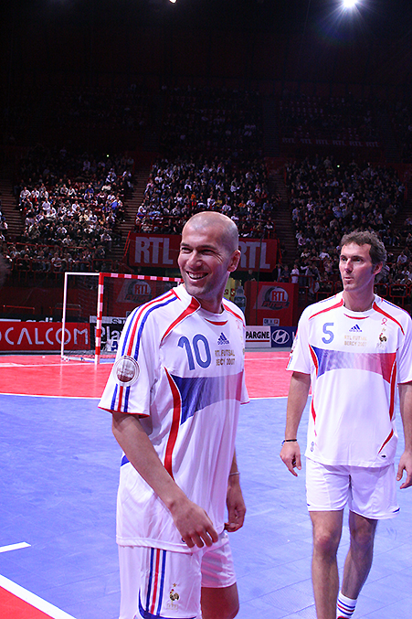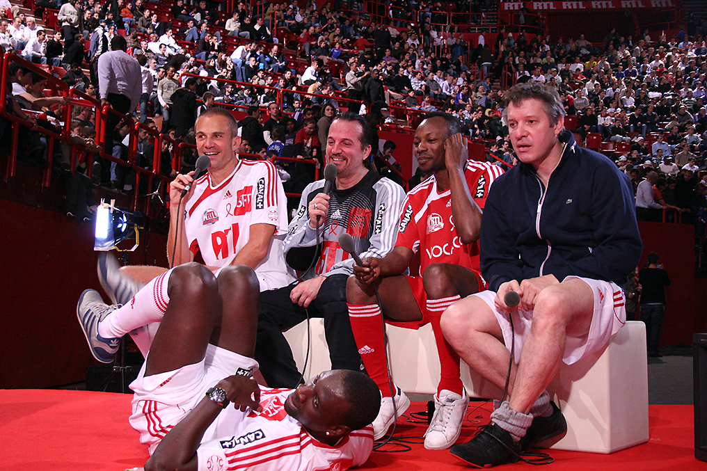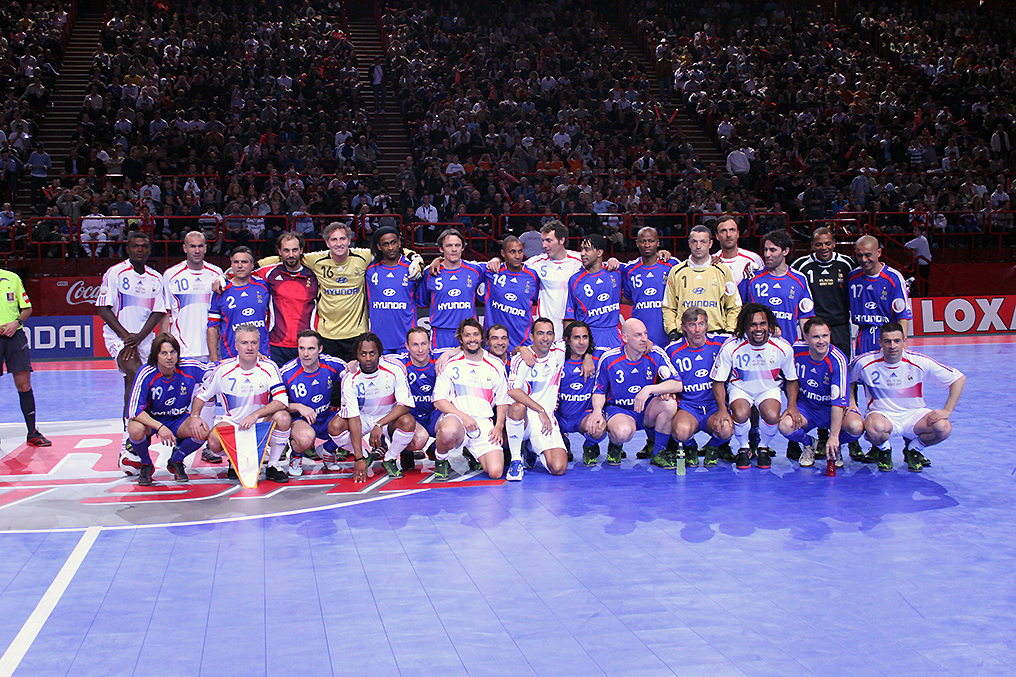 Il est 15h10 l’Accord Hotels Arena a fait salle comble et le public est survolté… L’équipe de France 1998 arrive en petites foulées pour affronter les équipes du PSG et des VIP invités…